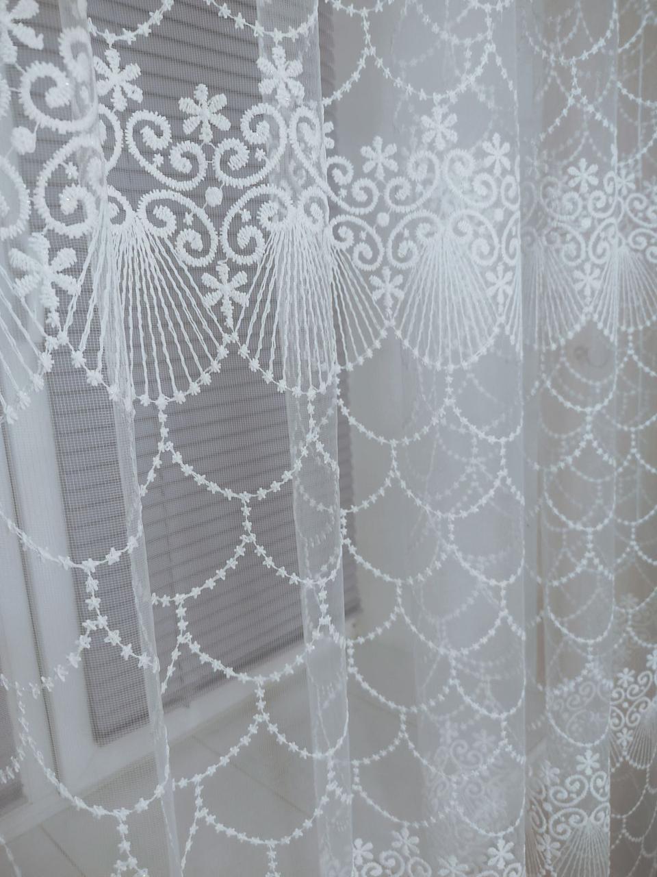 Фатин з густою вишивкою рядами кремового кольору без люрексовою нитки, туреччина
